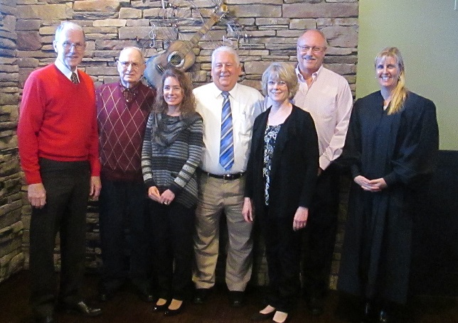 Stow Historical Society members met Saturday, December 6, 2014 at Stow Panini’s Bar and Grille for the annual installation luncheon. 2015 Board members were sworn in by Stow Municipal Court Judge Lisa Coates. Guests of honor were Mr. and Mrs. Ed Bose. Ed Bose and Richard Schilling were recognized for their efforts in the renovation of Stewart School. This project could not have succeeded without their labor, skills, and dedication.