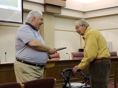 John Baranek was presented with a plaque at the member meeting November 26th in honor of his service and dedication to Stow Historical Society. John has been a member for 22 years and has served in several positions on the Board. He has been Board President for 11 years, making him the second longest serving President. (Paul Coleman was President for 12 years.) John will not be returning as Board President, but will remain active with the Society.