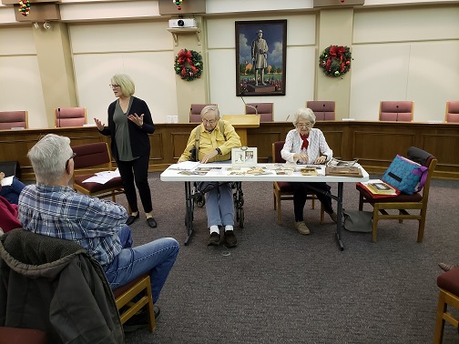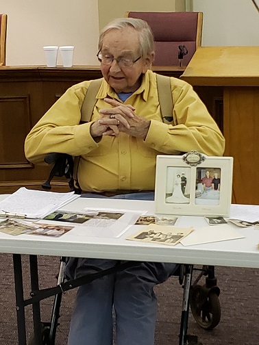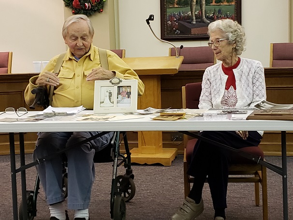 Members and friends of Stow Historical Society enjoyed an evening of Stow memories at the November 25th meeting. Long-time Stow residents, and Stow Historical Society members Houston Morgan and Joanne Barker reminisced about their lives in Stow. Houston shared his love of family and of Scouting. Joanne, as well, shared her love of family and memories of a rural Stow where she grew up on a 112 acre farm. Houston’s wife, Marylee, and Joanne’s husband, Charles, were also very involved in the community and the Historical Society.